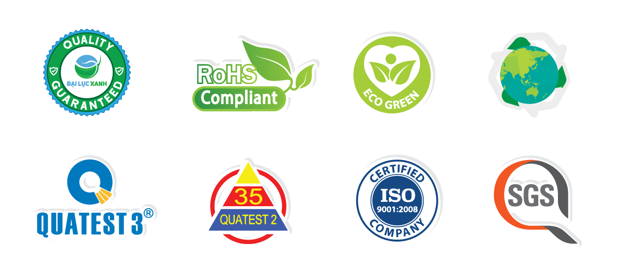 Chất lượng sản phẩm được Công ty Sản xuất và Thương mại ĐẠI LỤC XANH xác định đó là chiến lược cạnh tranh quan trọng nhất. ĐẠI LỤC XANH luôn coi trọng các công tác quản lý và kiểm soát chất lượng dịch vụ. Chúng tôi đã triển khai áp dụng hệ thống quản lý tiêu chuẩn chất lượng vào các quy trình chăm sóc khách hàng, phát triển sản phẩm mới, dịch vụ bảo hành,… quản lý chất lượng sản phẩm và dịch vụ tốt nhất cho khách hàng.